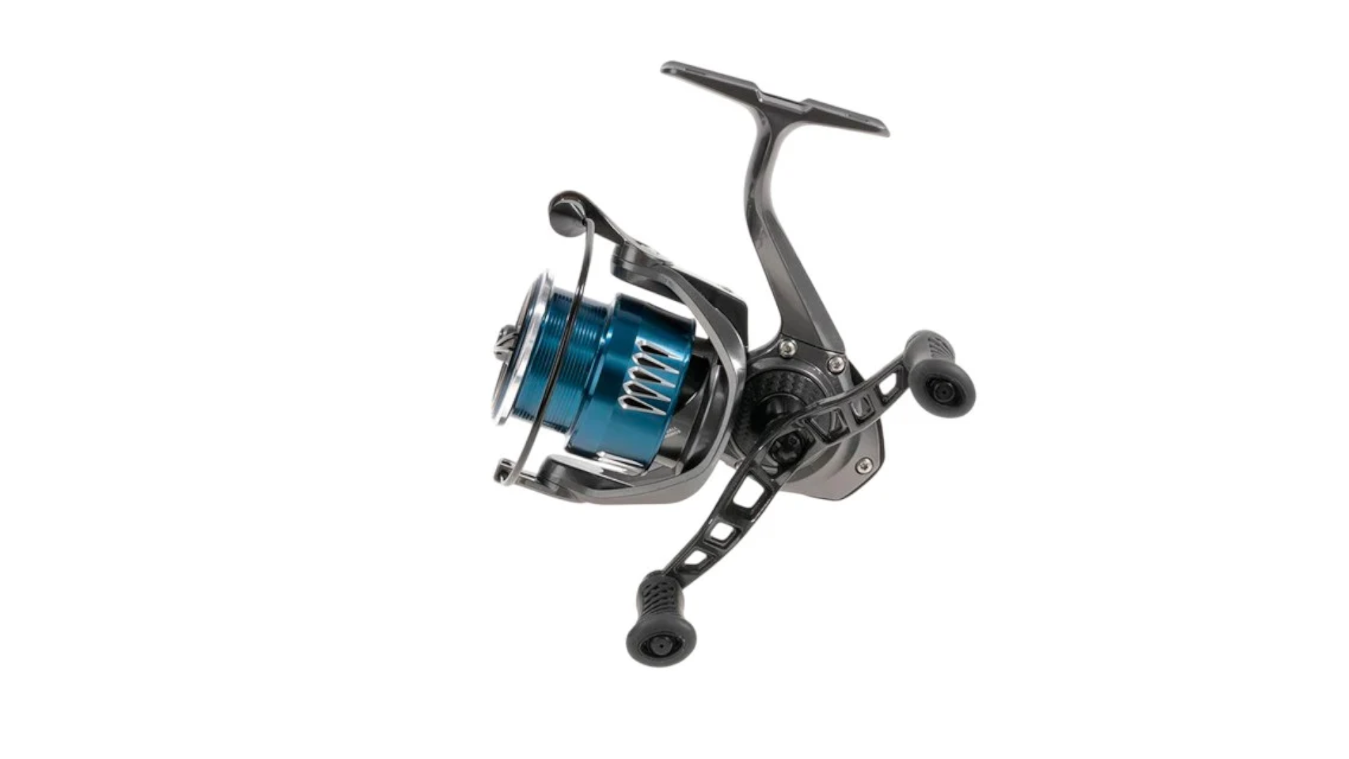Incluye una doble manivela de carbono con pomos engomados para un mayor control del movimiento del señuelo y un stand antirayaduras que protege el carrete al apoyarlo en superficies duras.