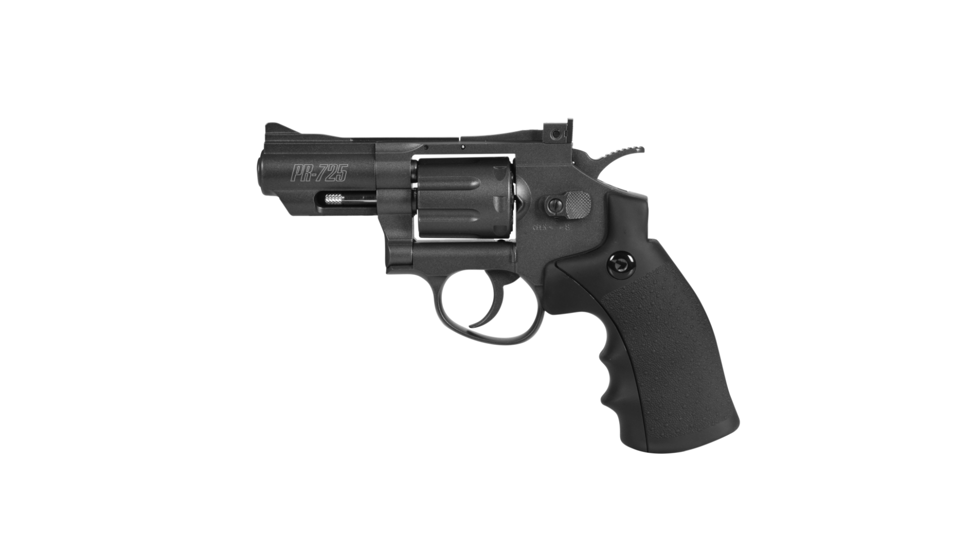 Este revólver semi-automático es una versión acortada del revólver PR-776, un arma de lo más real gracias a su aspecto en Full Metal que le otorga un peso de 870 gramos. En el cañón aparece sobre-impresionado el modelo del revólver PR-725.